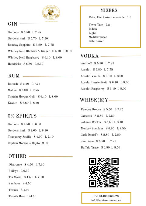 From 24th January · Welcome to The Squirrel Inn · A return to traditional pub & country dining · Great British classics · Family friendly · Free parking