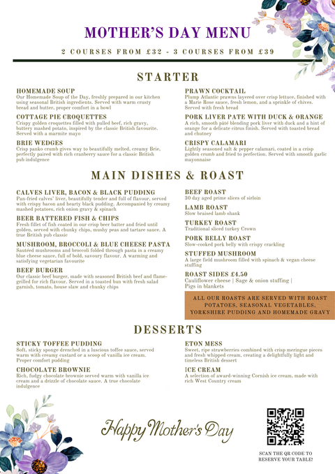 The Squirrel Inn is the perfect place to slow down, unwind and enjoy a special Mother’s Day together — with great food, great company, and a warm welcome.
